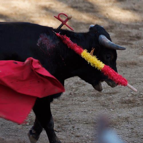En cuanto a las corridas, no quiero reiterar lo que los antitaurinos venimos repitiendo año tras año.  Todos los que van al coso saben de la crueldad, la tortura y la mala saña a las que son sometidos los toros. Lo saben y lo hacen. Mientras unos cuantos babosos recrean sus orondas posaderas en las gradas. La fiesta o la marca España queda a resguardo del futuro, siempre incierto. El toro de lidia es un "producto" de esa marca y no voy a llorar porque desaparezca. Por eso digo: nunca más.