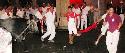 TAFALLA. EL TORO QUE NO SABE QUE HACE AHÍ Y LOS PARTICIPANTES QUE TAMPOCO LO SABEN.