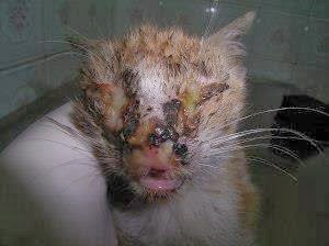 Gata con rinotraqueitis infecciosa, sin tratar, durante mucho tiempo.