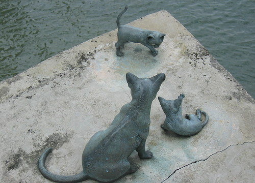El Castillo de los gatos, en Belfast. Tiene en toda su extensión esculturas de gatos de formas y tamaños diversos.