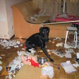 Un perro al que dejan sólo en casa durante muchas horas, se aburre y para entretenerse destroza todo lo que encuentra…